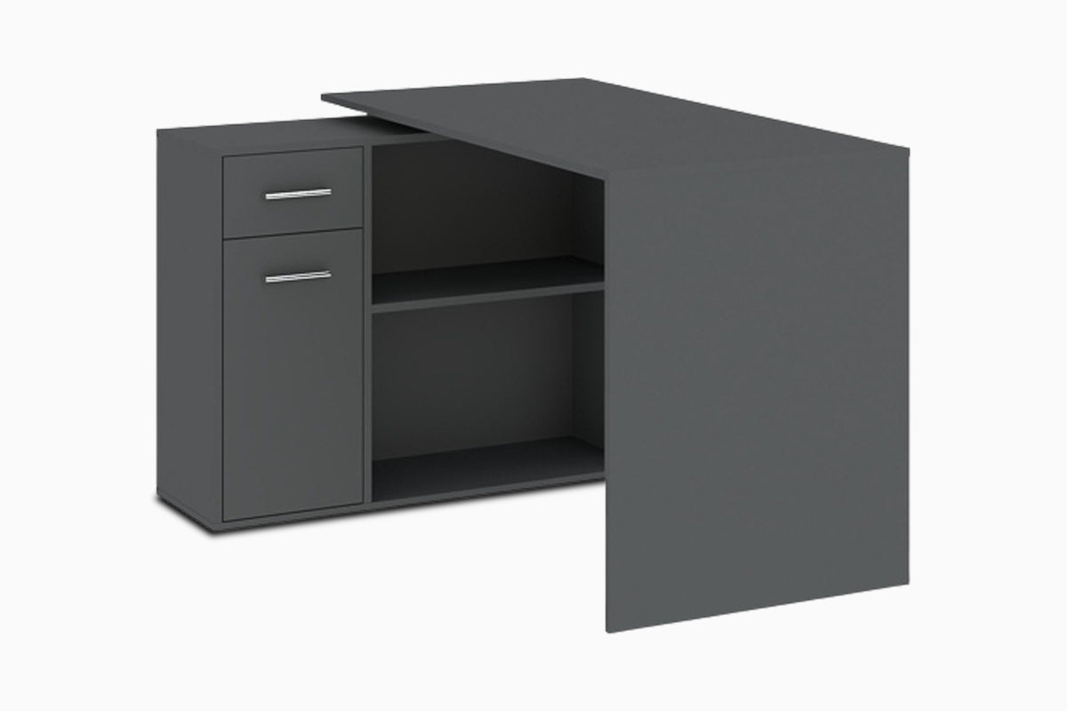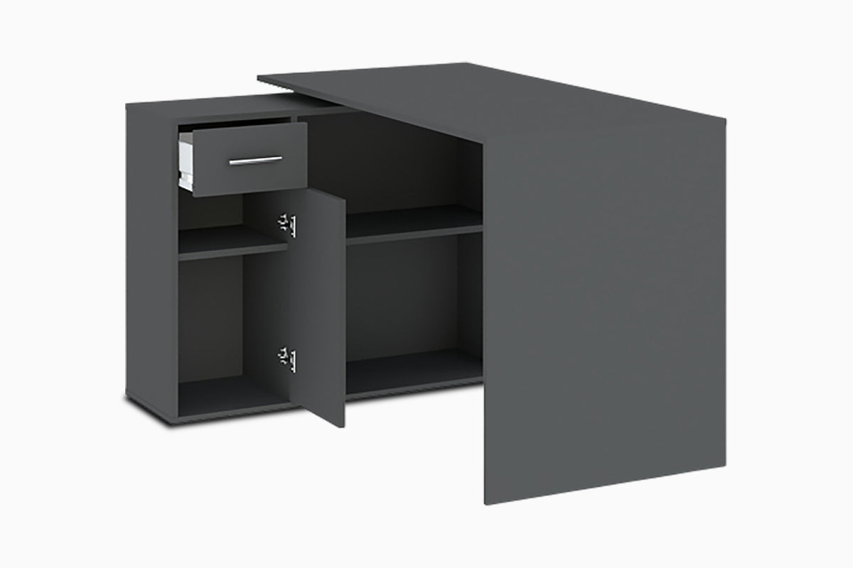 Darbo stalas Firm – solidus ir funkcionalus baldas, sukurtas tiems, kurie vertina patogumą bei modernų dizainą. Tamsiai pilkos spalvos paviršius suteikia interjerui elegancijos ir subtilumo, todėl šis stalas puikiai tiks tiek namų biurui, tiek jaunimo kambariui.