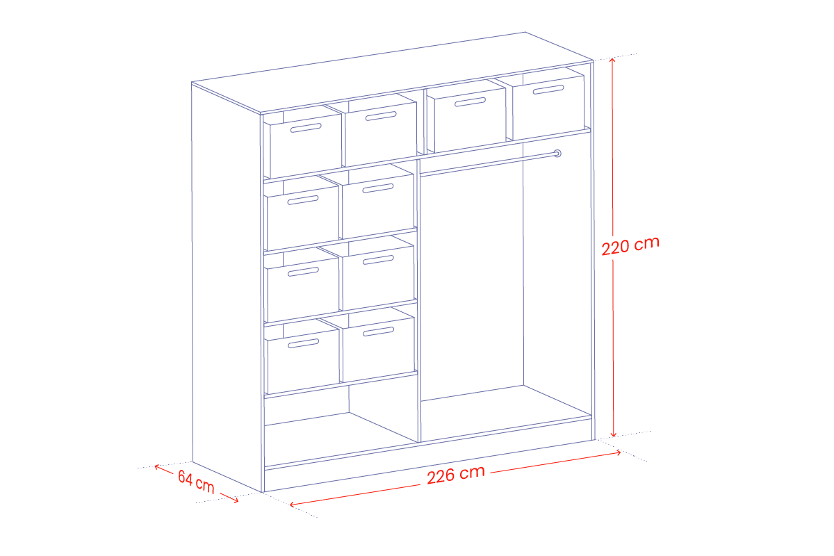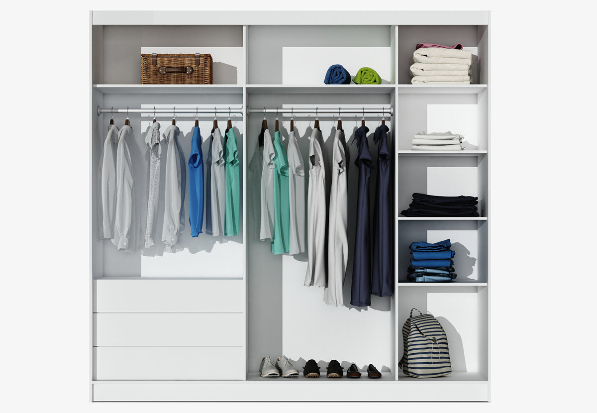 Unikalaus dizaino spinta Lunet, skirta tiems, kurie nori, kad visi jų rūbai turėtų vietą. Lunet idealiai tiks modernaus ir minimalistinio interjero namuose, šviesiose erdvėse. Ši spinta turi dvi duris, 7 plačias ir gilias lentynas, 3 gilius stalčius bei porą kabyklų.