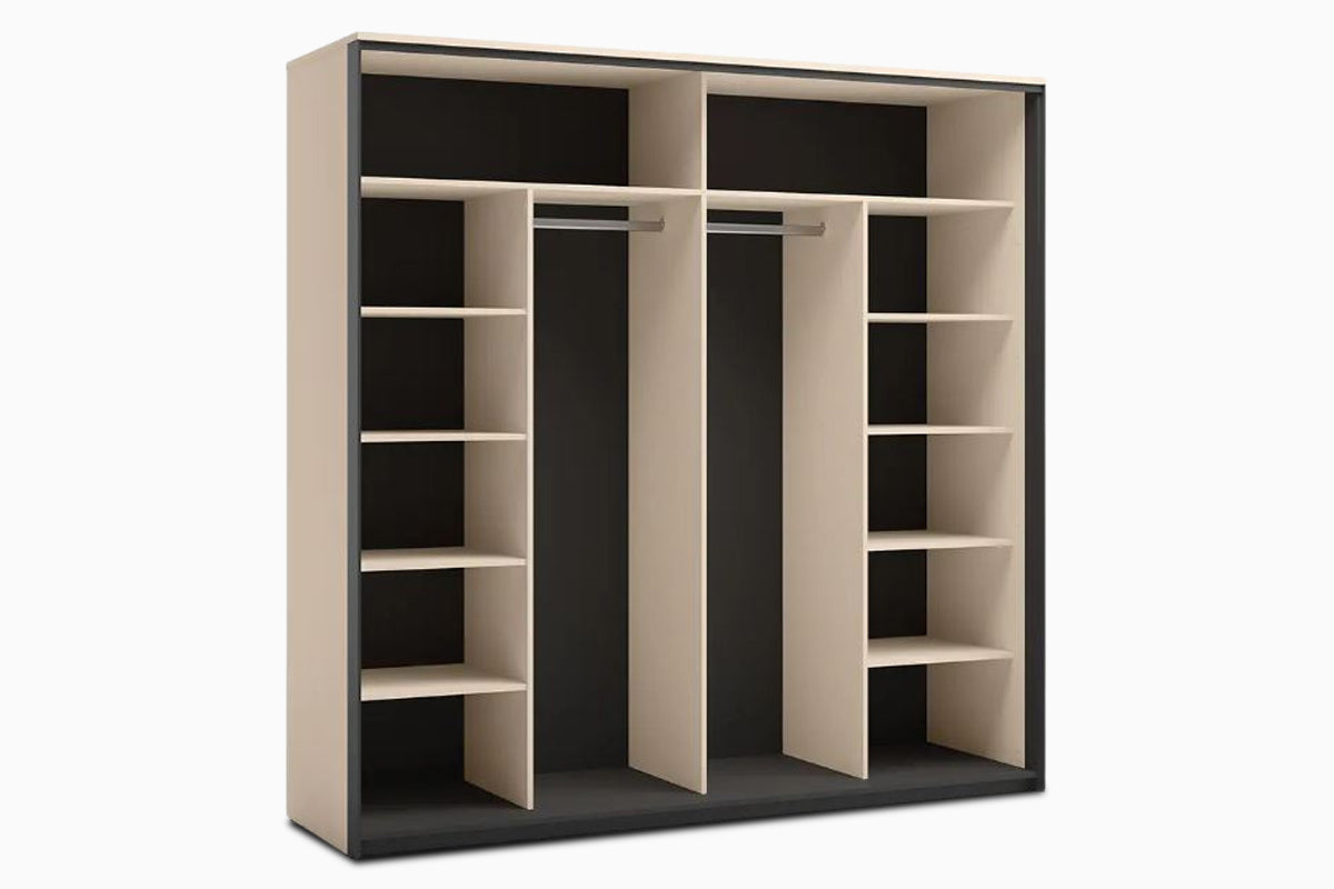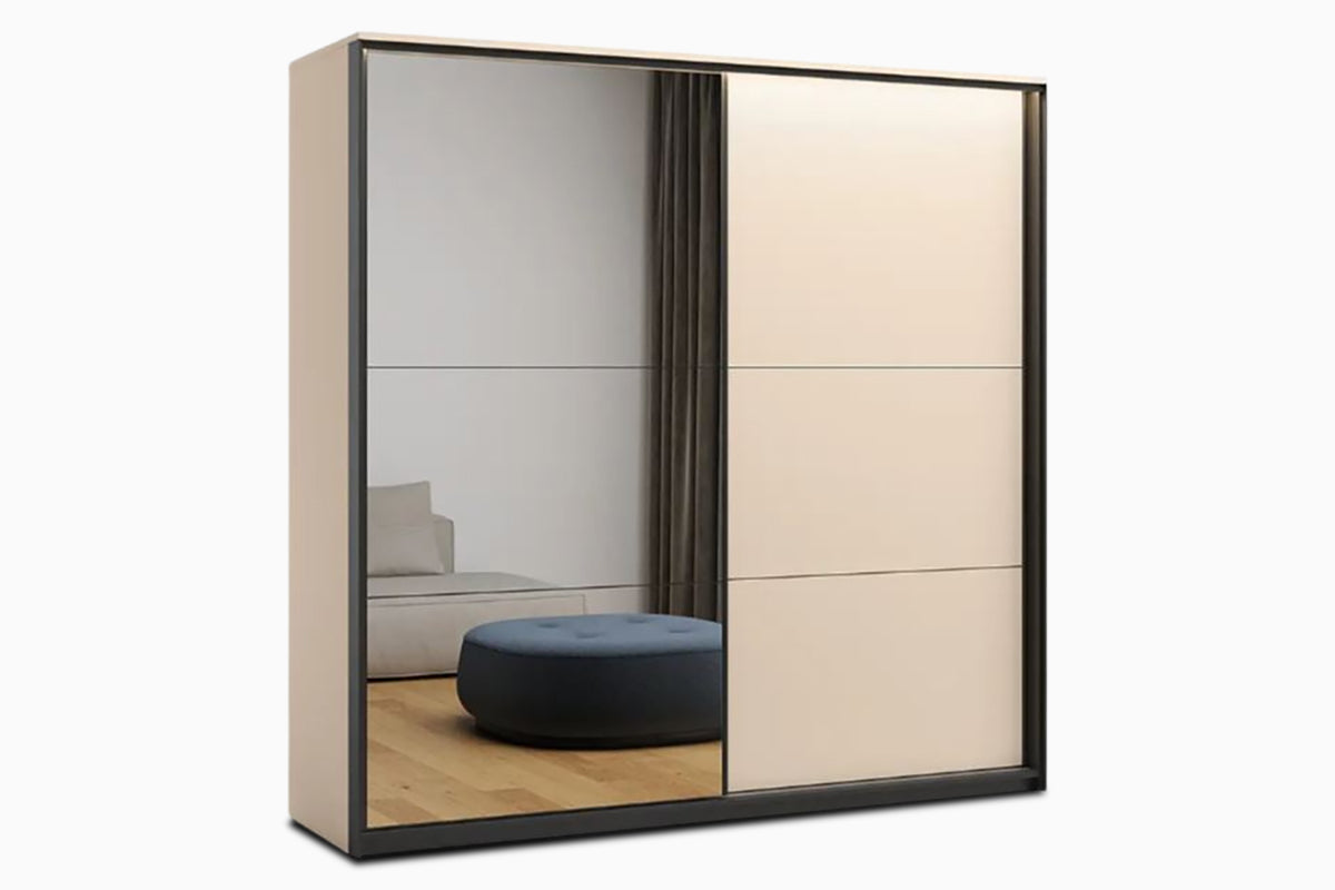 Stumdomos durys leidžia sutaupyti vietos net mažesniuose kambariuose, o didelis veidrodis suteikia šviesos bei vizualiai praplečia erdvę. Šviesių atspalvių ir kontrastingų rėmų derinys išryškina šiuolaikišką dizainą, todėl spinta Susan lengvai įsilies tiek į modernų, tiek į minimalistinį interjerą, suteikdama jam estetikos ir tvarkos pojūtį.