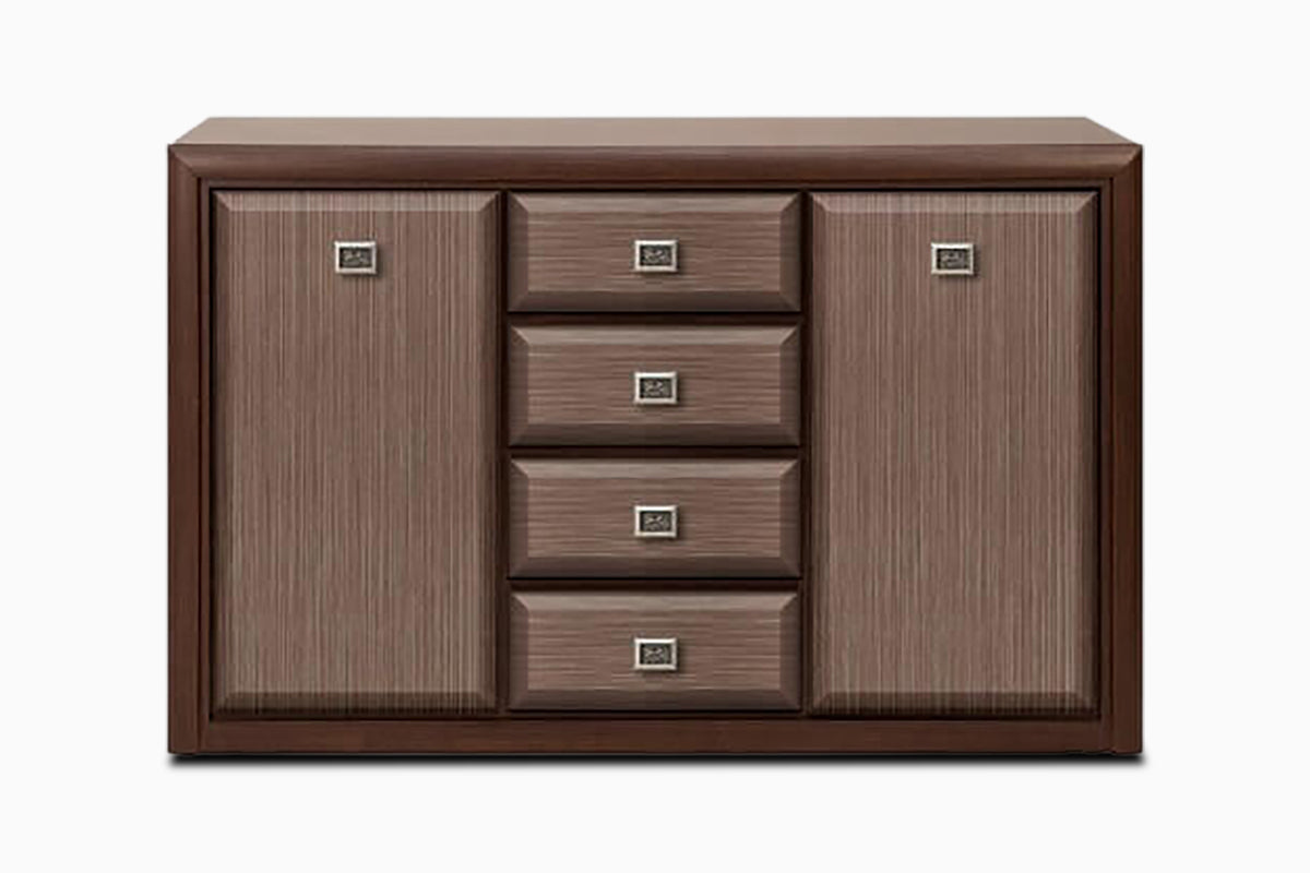 Komoda Boss – solidus ir išraiškingas baldas, kuris spinduliuoja klasikinę eleganciją. Tamsaus medžio atspalviai ir dekoratyvios rankenėlės suteikia prabangos įspūdį, o praktiškas išplanavimas su stalčiais ir uždarais skyriais leidžia tvarkingai laikyti visus būtinus daiktus. Puikus pasirinkimas vertinantiems kokybę ir rafinuotą stilių.