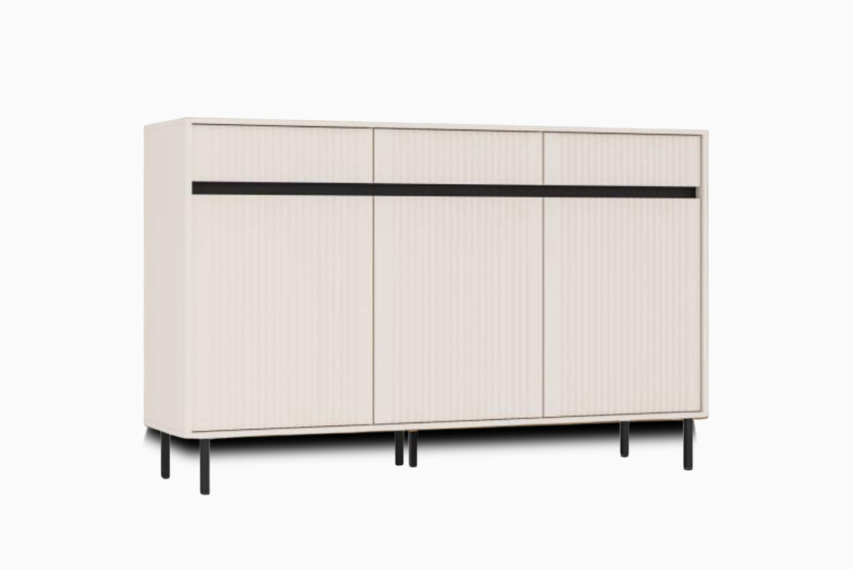 Komoda yra praktiška ir talpi – joje rasite pakankamai vietos saugoti daiktus. Jos erdvus dizainas leidžia tvarkingai organizuoti namų aplinką. Stilingas derinys tarp funkcionalumo ir estetikos padaro šį baldą nepakeičiamu pasirinkimu, siekiant sukurti harmoningą ir patogią namų aplinką.