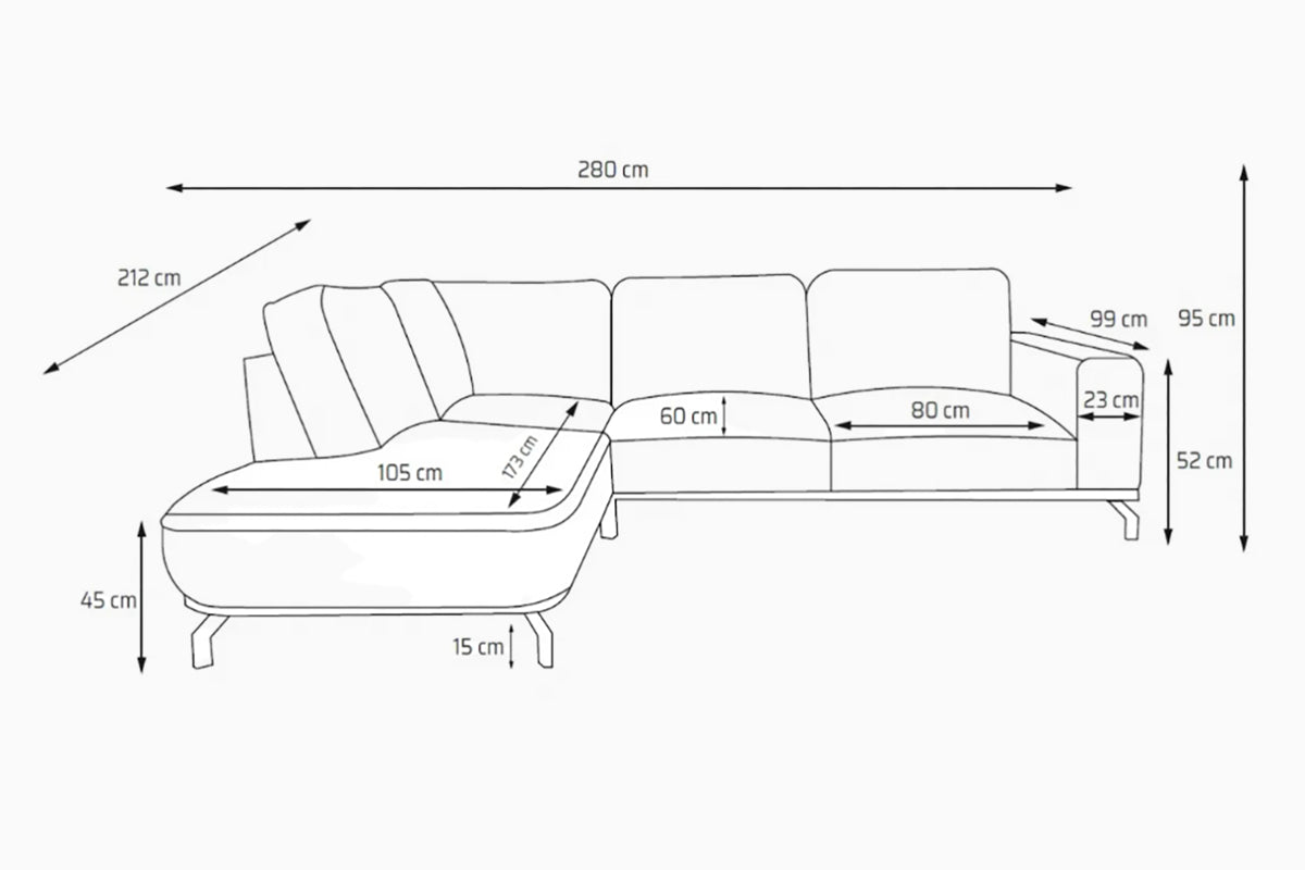 Andro – modernus, minimalistinio dizaino minkštas kampas, skirtas kasdieniam poilsiui ir jaukiems vakarams namuose. Tvarkingos, švarios linijos ir subtilios siūlės suteikia baldui estetišką, šiuolaikišką išvaizdą, o minkštos nugarinės pagalvės padeda patogiai įsitaisyti tiek žiūrint filmą, tiek tiesiog atsipalaiduojant. Aukštos metalinės kojelės vizualiai palengvina kampą ir sudaro puikias sąlygas grindų valymui po baldu, todėl Andro lengvai įsilieja į įvairius interjerus ir išlieka praktiškas kasdienybėje.