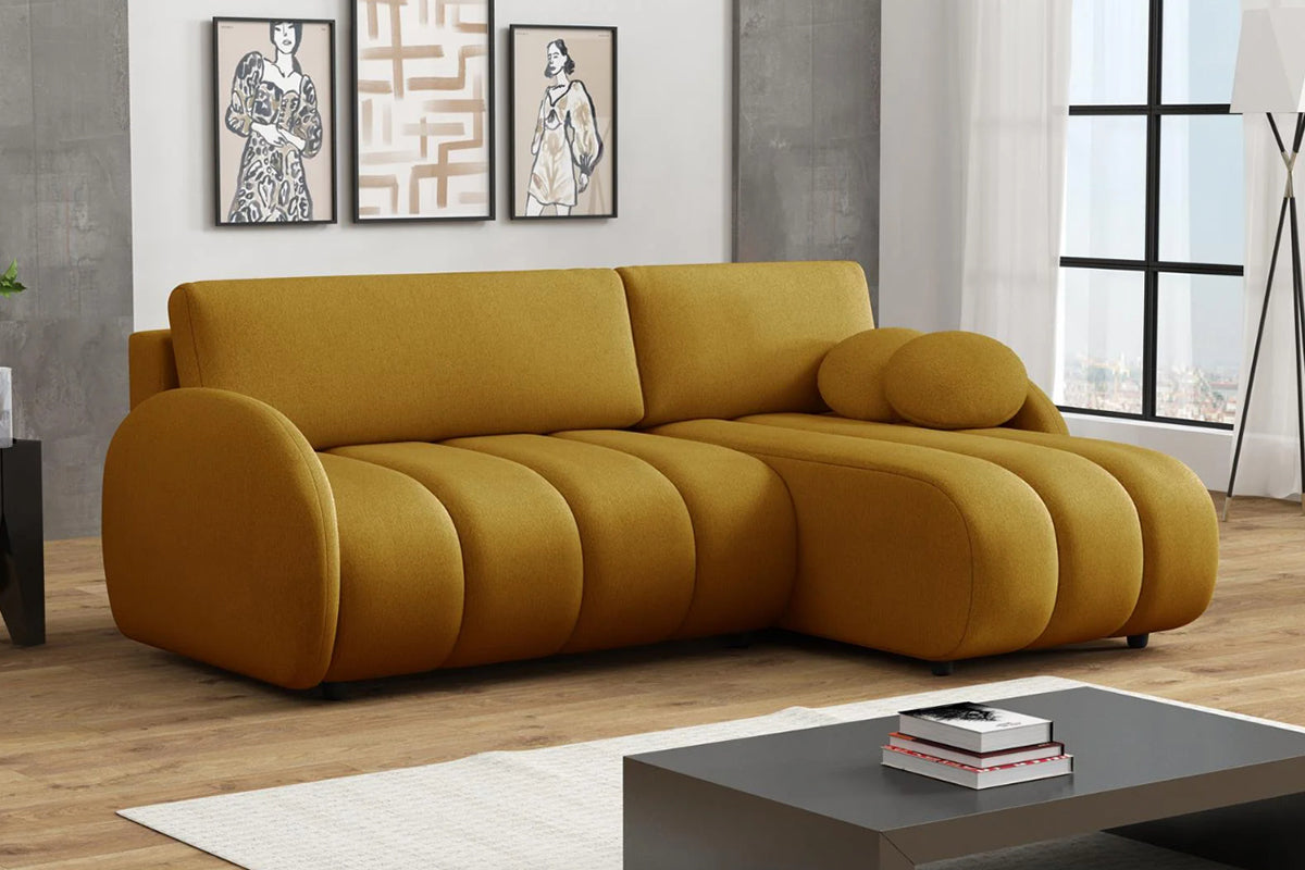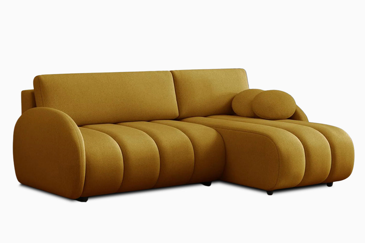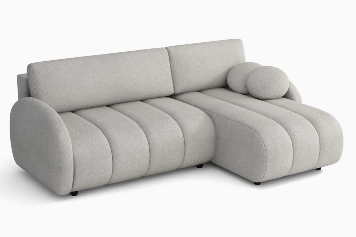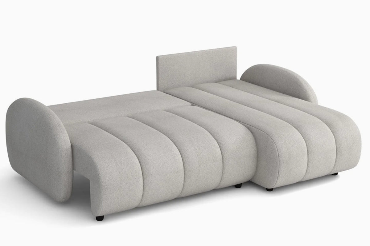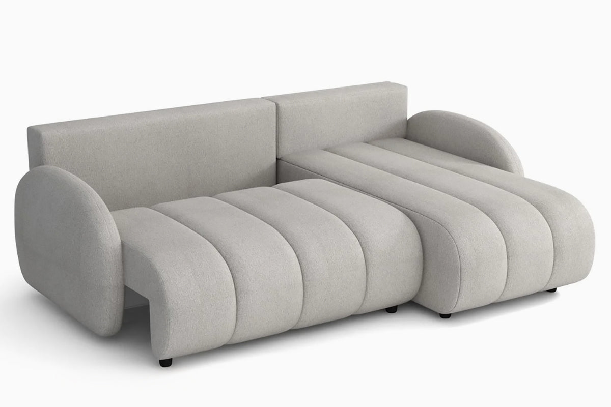 Minkštas kampas Bouncy II – išskirtinio dizaino kampas, sukurtas tiems, kas nori išskirtinio baldo ir maksimalaus jaukumo. Apvalintos formos ir išraiškingos vertikalios siūlės suteikia jam minkštą, debesėlio efektą, o plati gulima dalis leidžia patogiai išsitiesti ir ilsėtis kaip ant lovos. Komfortiškas atlošas ir švelnios, apvalios pagalvėlės papildo poilsio jausmą, o žemos kojelės ir vientisos linijos išlaiko modernų, minimalistinį įvaizdį. Bouncy II puikiai tinka šiuolaikiškam interjerui, kuriame norisi daugiau šilumos, tekstūros ir išskirtinumo.