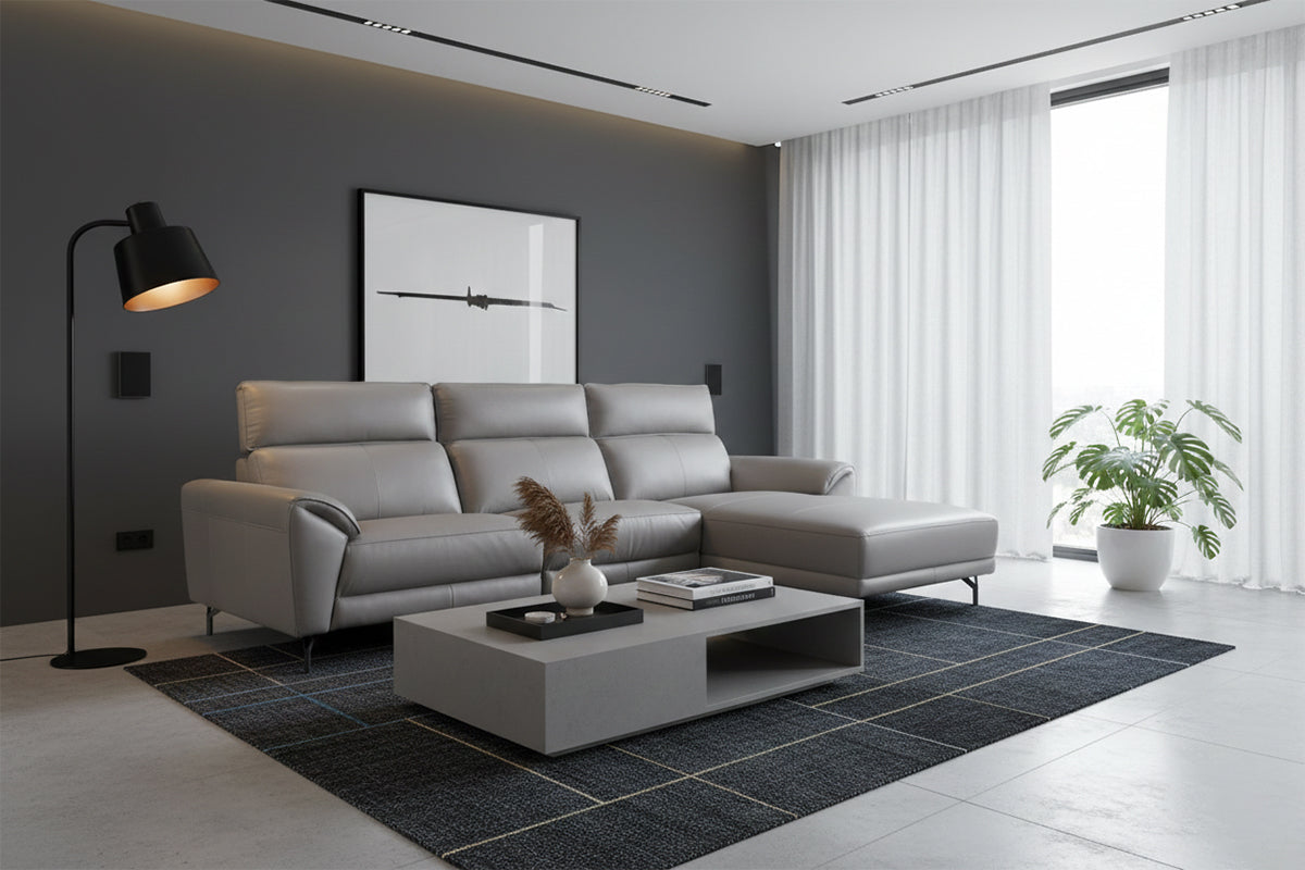 Minkštas kampas Adelo – solidus ir modernus baldas, sukurtas tikram poilsiui. Kampas turi „relax“ funkciją: atlošiamas atlošas ir išsitraukianti kojų atrama leidžia patogiai įsitaisyti ir atsipalaiduoti po dienos darbų. Plati miegama/poilsio dalis suteikia daugiau erdvės išsitiesti, o minkšti porankiai ir aukšta nugaros atrama užtikrina gerą komfortą kasdien. Elegantiškos metalinės kojelės suteikia lengvumo ir šiuolaikišką vaizdą, todėl Adelo lengvai įsilieja į modernų interjerą.