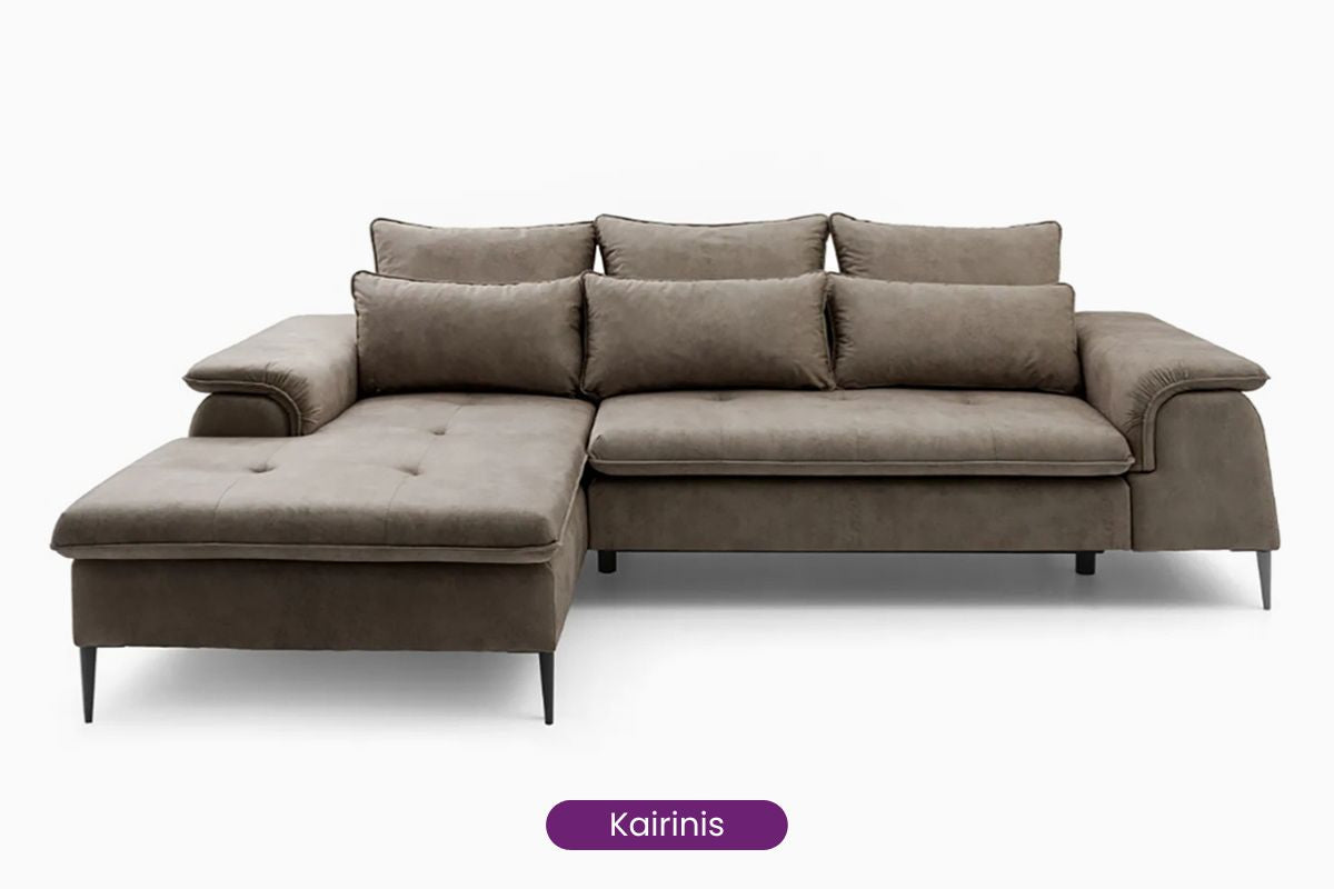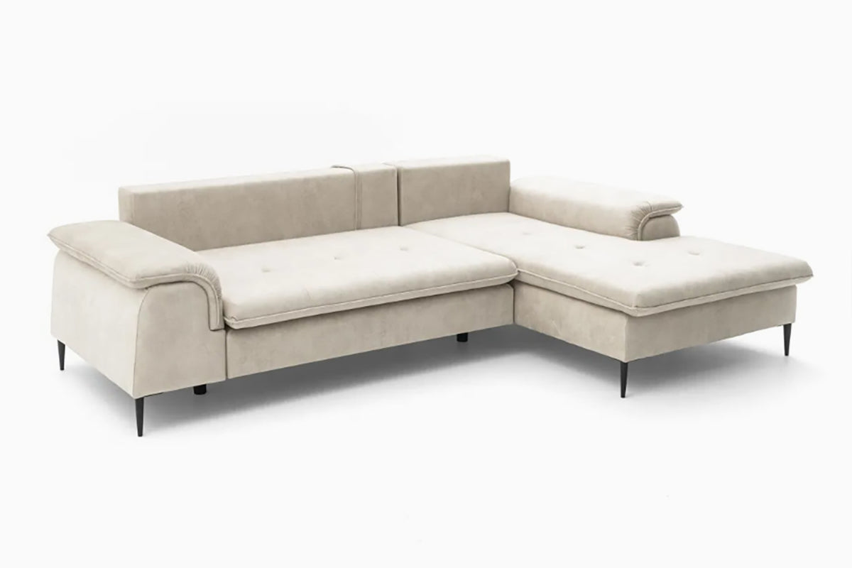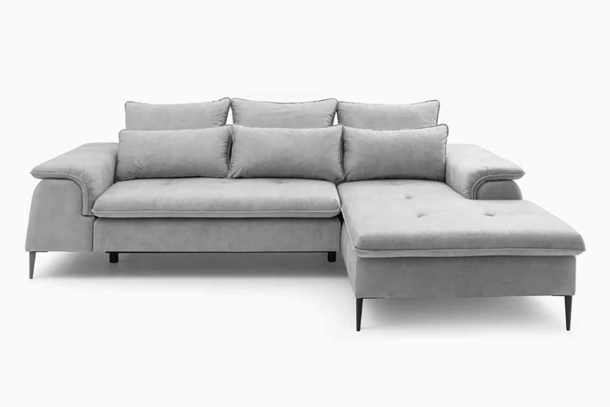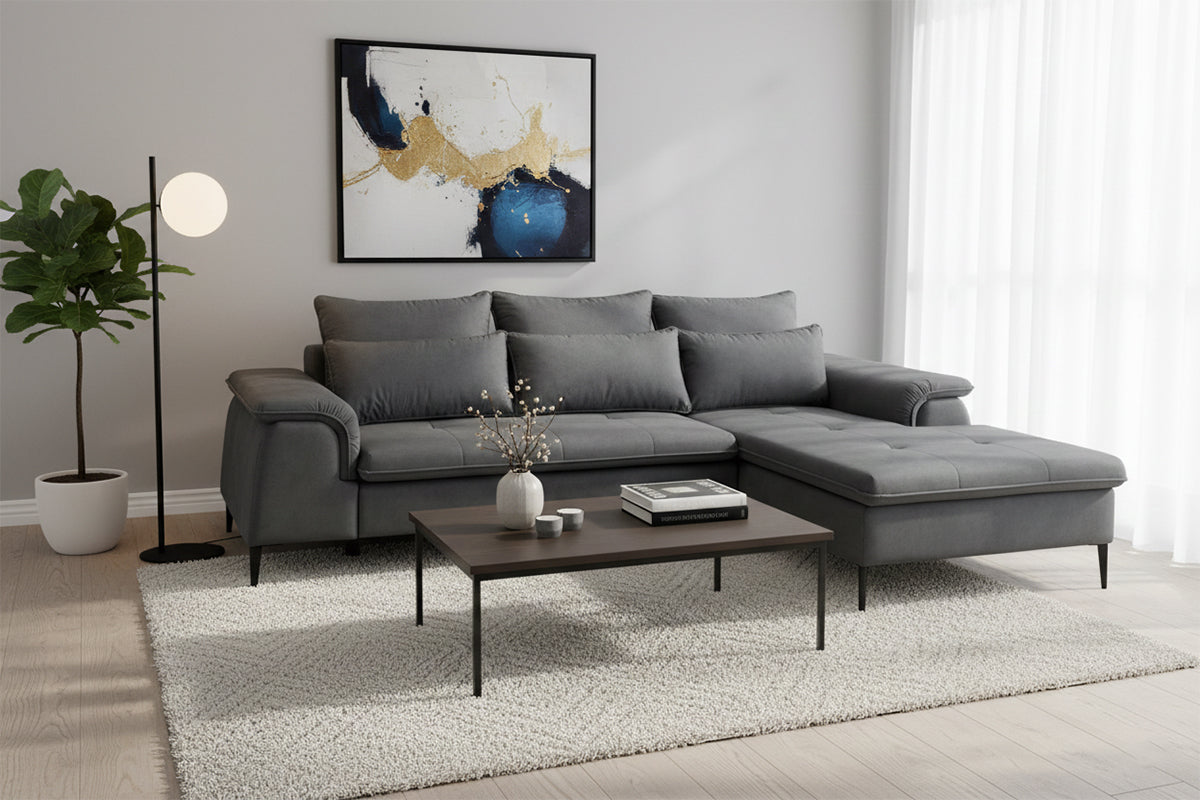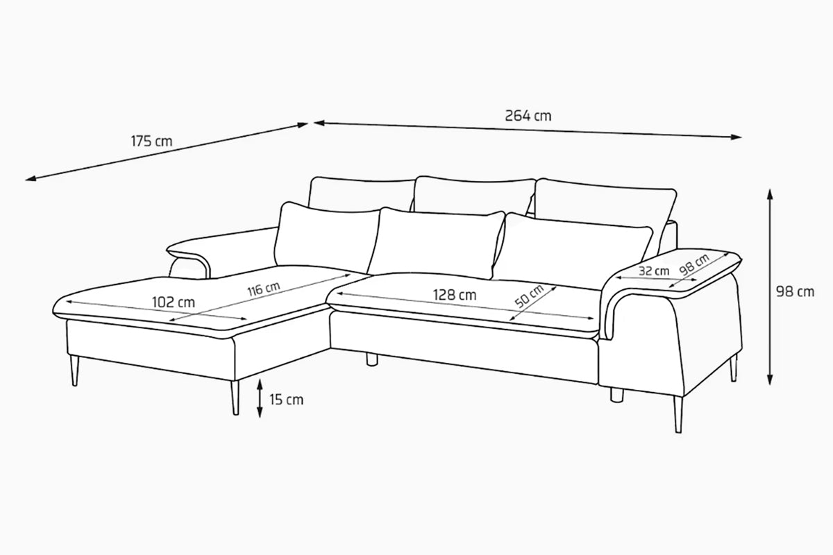 Minkštas kampas Gelario – modernus ir jaukus baldas šiuolaikiškai svetainei. Gili sėdimoji dalis ir minkštos pagalvės užtikrina patogų poilsį kasdien, o elegantiškos metalinės kojelės suteikia lengvumo ir stiliaus. Dėl neutralių spalvų ir subtilių formų Gelario lengvai įsilieja į įvairius interjerus.