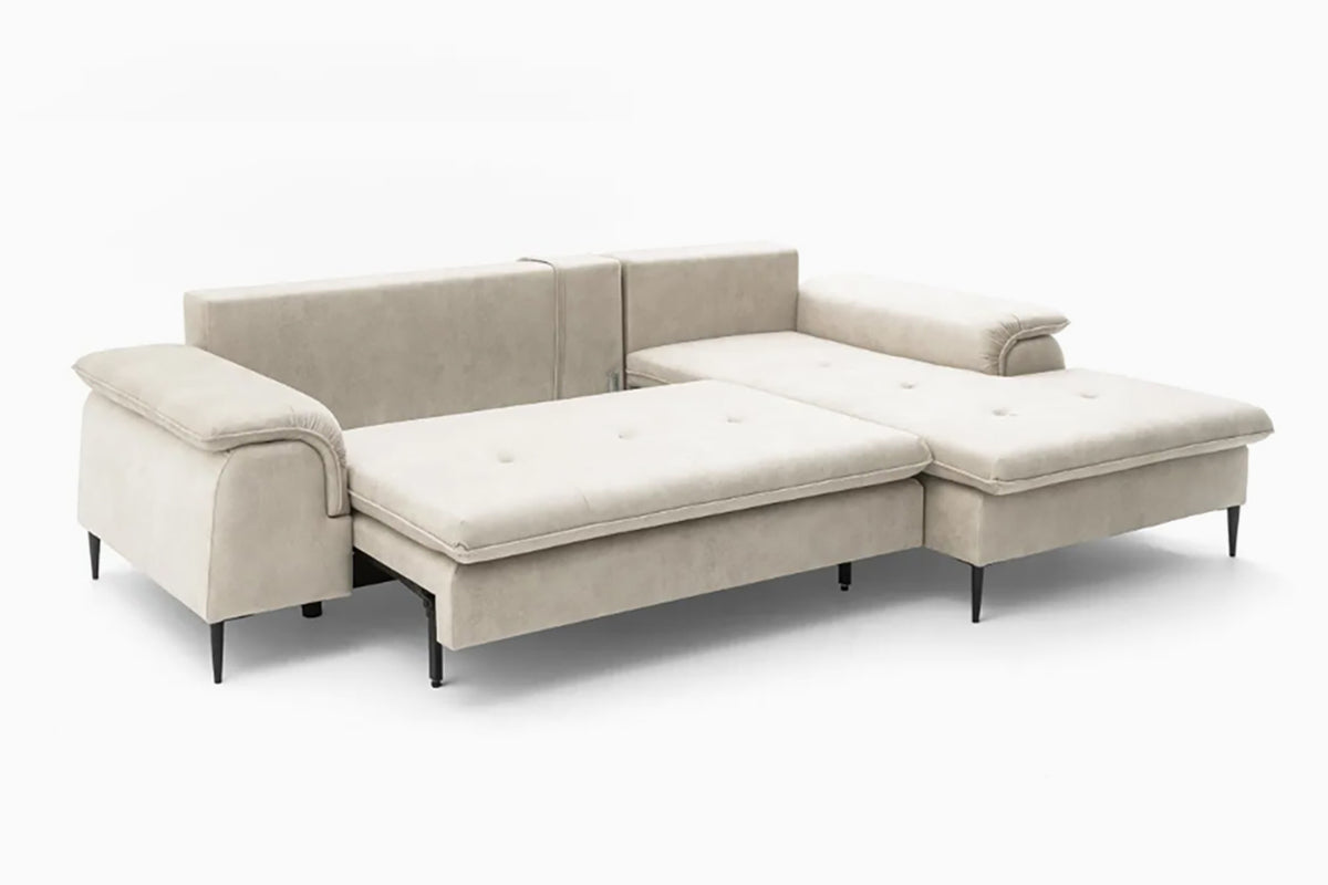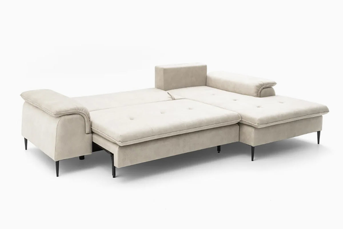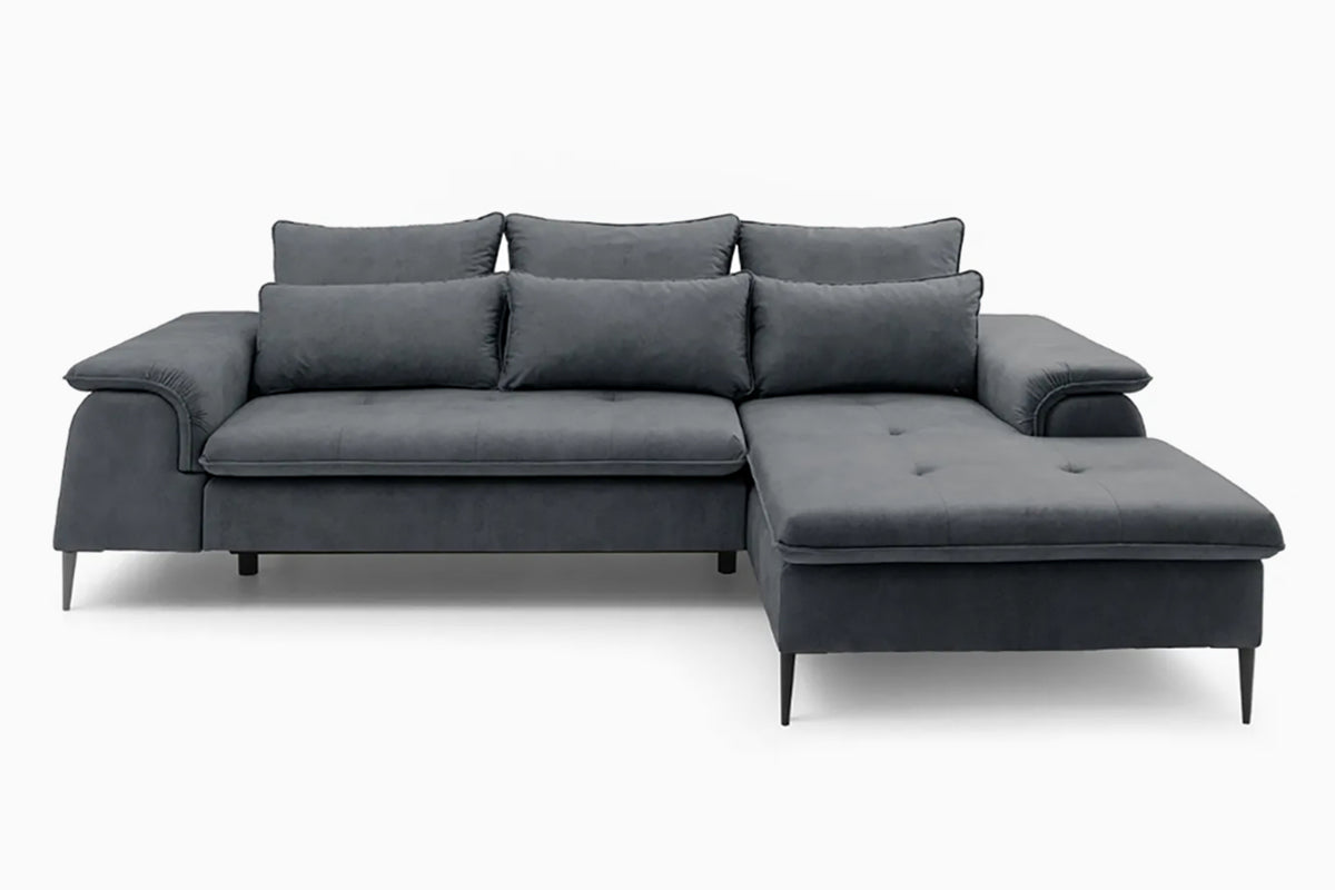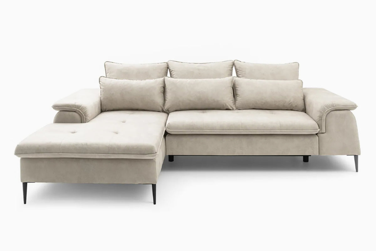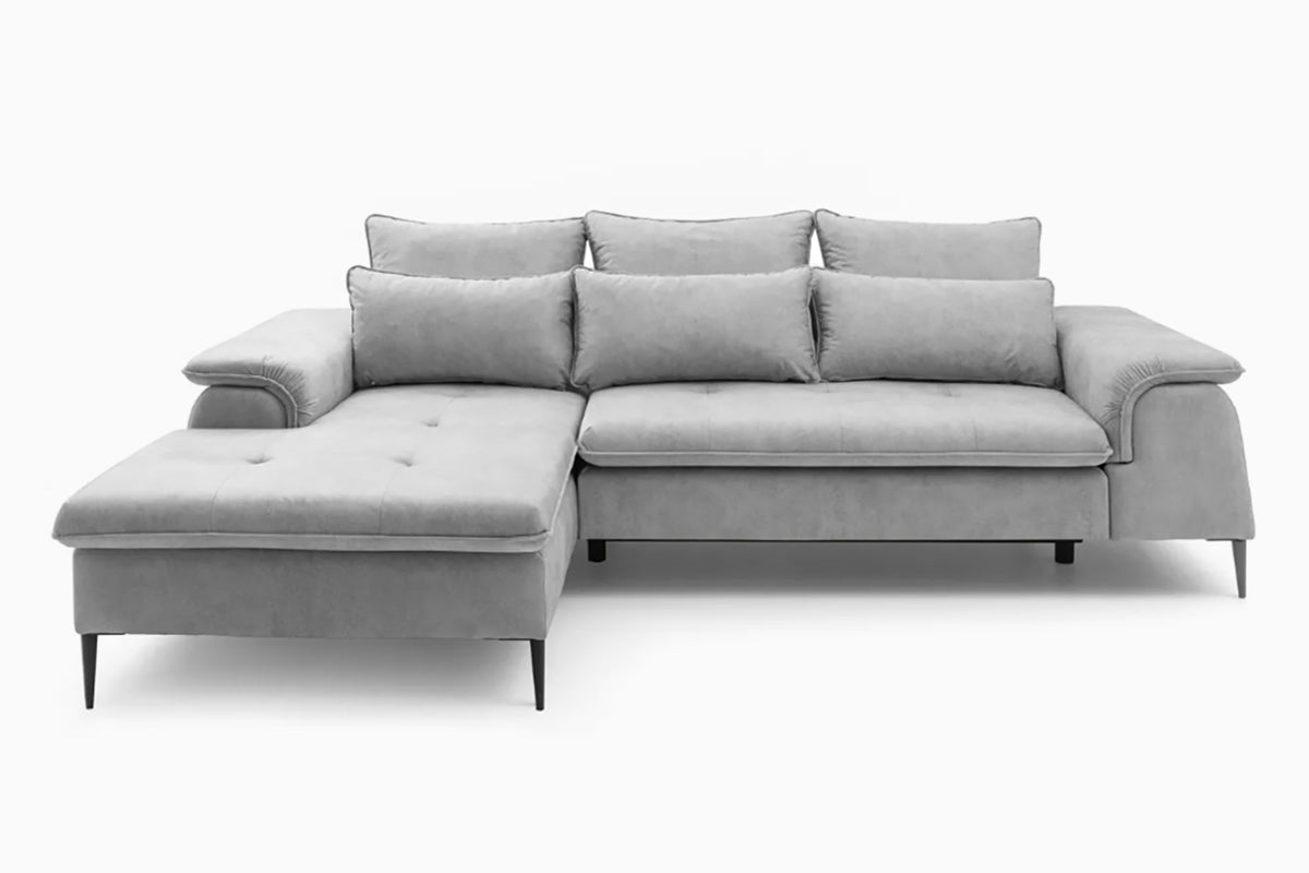 Minkštas kampas Gelario – modernus ir jaukus baldas šiuolaikiškai svetainei. Gili sėdimoji dalis ir minkštos pagalvės užtikrina patogų poilsį kasdien, o elegantiškos metalinės kojelės suteikia lengvumo ir stiliaus. Dėl neutralių spalvų ir subtilių formų Gelario lengvai įsilieja į įvairius interjerus.