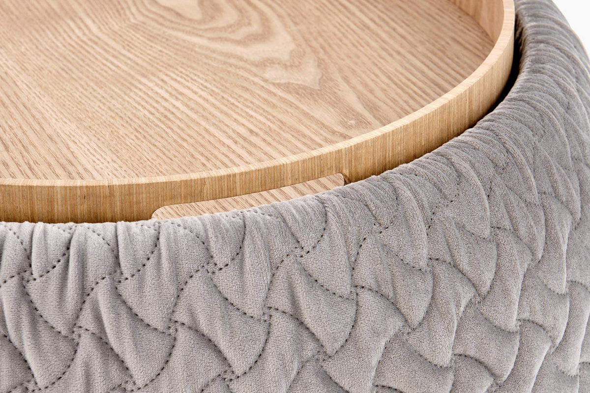 Pufas Jupiter – elegantiškas ir funkcionalus baldas, derinantis modernų dizainą ir patogumą. Apvalios formos korpusas aptrauktas minkštu, raštuotu audiniu, suteikiančiu interjerui jaukumo ir išskirtinumo.