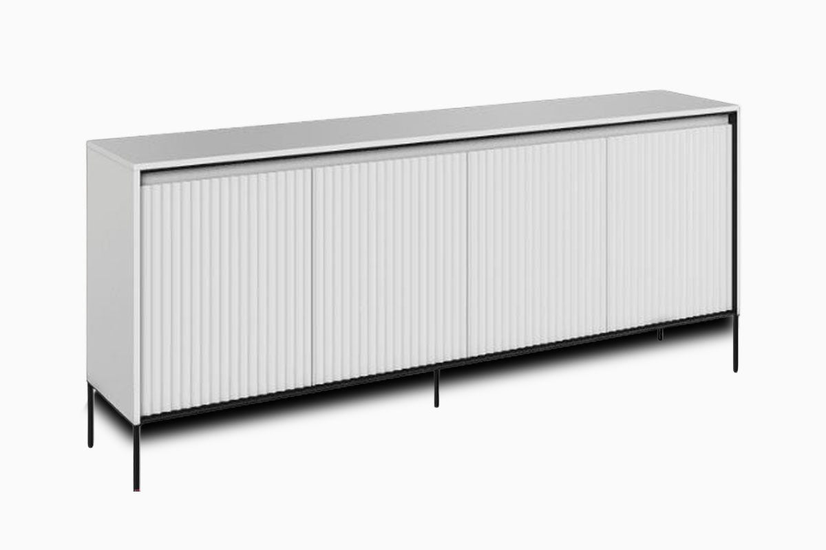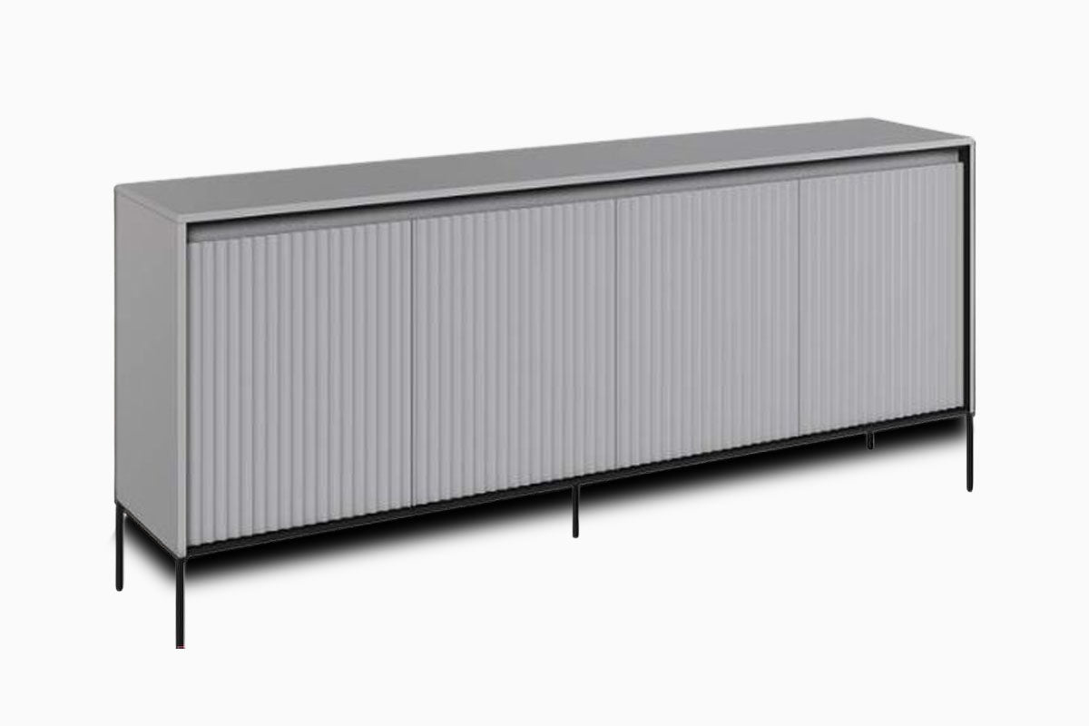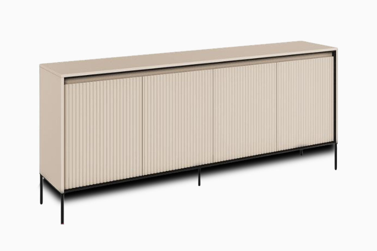 Kumode Sil ir eleganta un funkcionāla izvēle tiem, kas novērtē modernu stilu. Melnā virsma ar smalku reljefu dizainu un minimālistiskām metāla kājām piešķir mēbelēm izsmalcinātības un viegluma sajūtu.