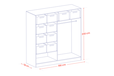 Spring Lux skapis ar dubultajiem spoguļiem un smalkiem zelta rokturiem izstaro stilīgu maigumu. Plašais interjers ar daudzajiem plauktiem, pakaramo un trim atvilktnēm ļauj glīti sakārtot visas drēbes un aksesuārus. Šī ir lieliska izvēle tiem, kas vēlas radīt mājīgu, sakoptu un estētiski pievilcīgu telpu.