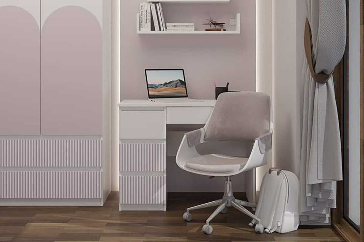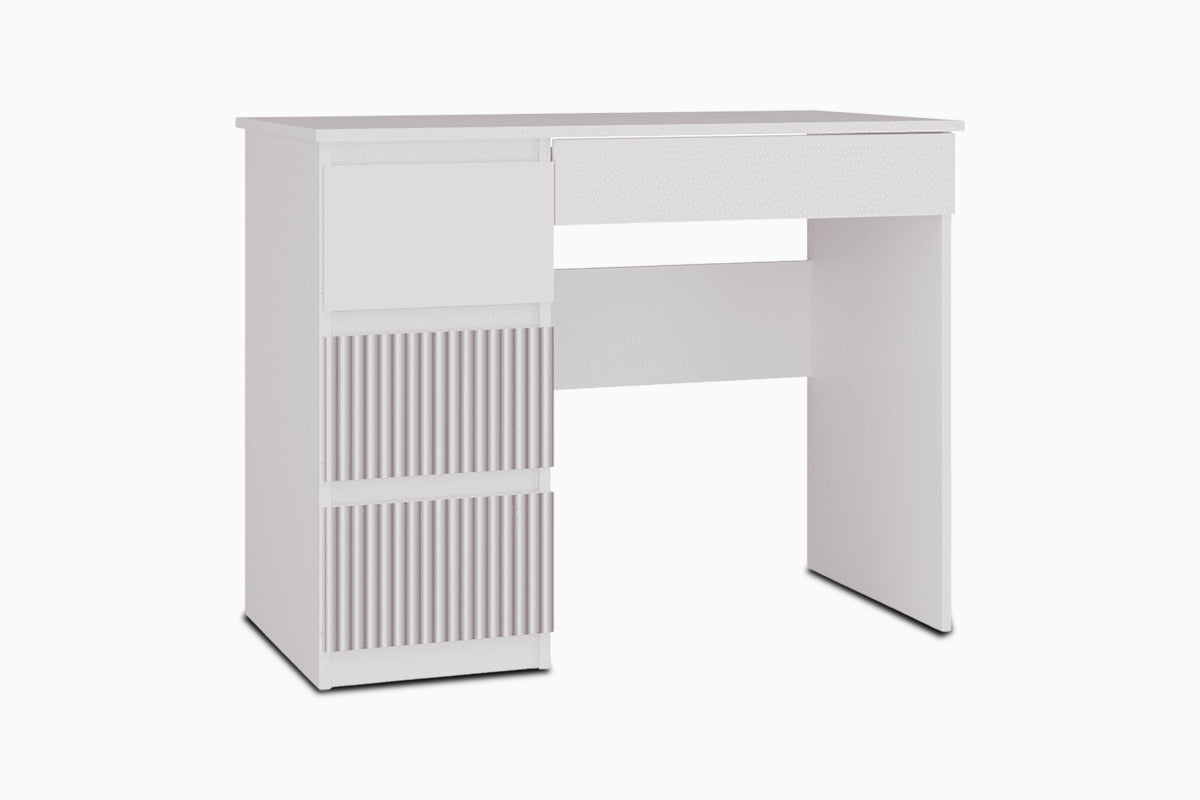 Darbo stalas Rose – tai elegantiškas ir modernus pasirinkimas tiems, kurie vertina stilių bei funkcionalumą. Šviesios spalvos stalas su dekoratyvinėmis horizontaliomis linijomis ant fasadų suteikia interjerui subtilios išraiškos, o minimalistinė forma leidžia jį lengvai pritaikyti įvairiuose kambariuose – nuo vaikų ar paauglių kambario iki namų biuro.